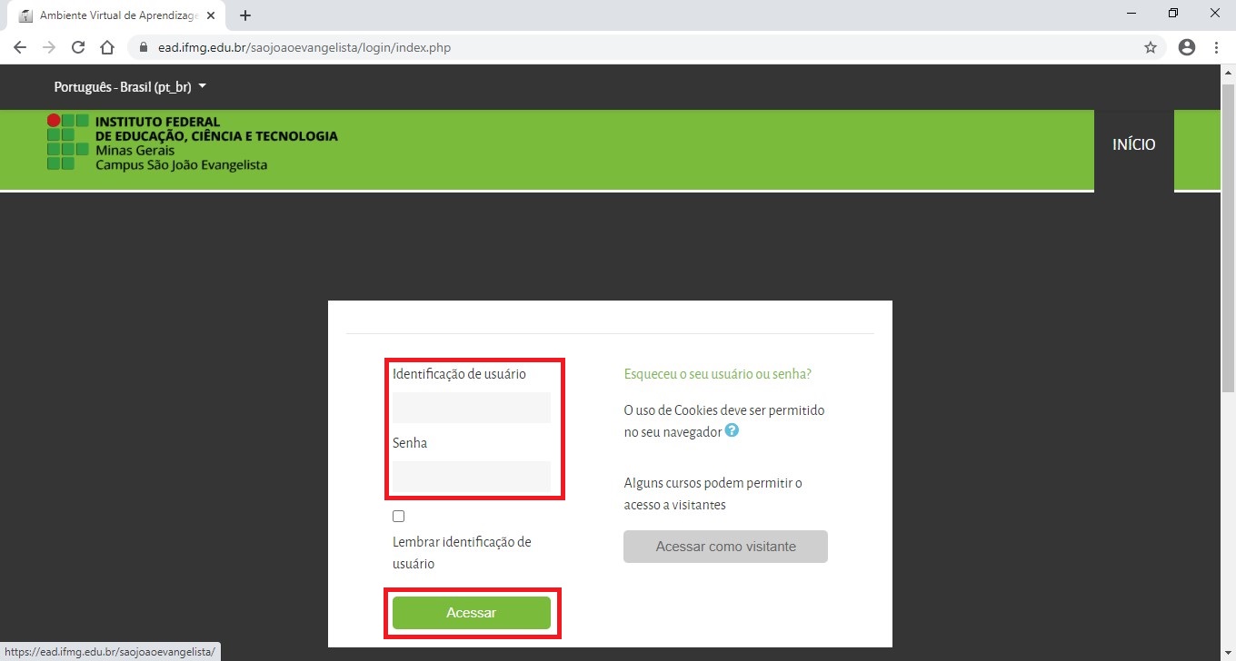 de login do AVA Moodle do IFMG - Campus São João Evangelista